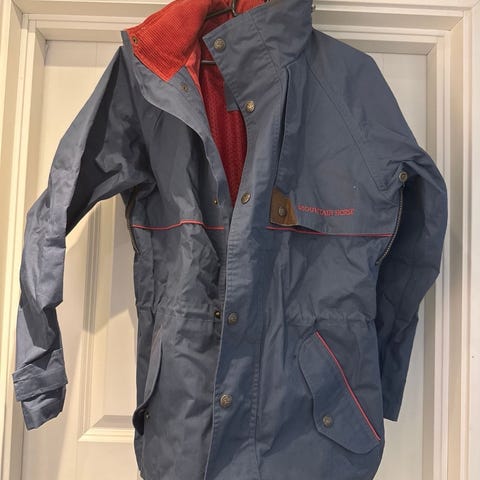 Foret ridejakke som kan brukes på begge sider (beige side med glidelåslommer og grønn side med trykknapper på lommene), samt som vest🌸 Mange år gammel, men pent brukt og nyvasket. Finner ikke størrelse, men passer small.