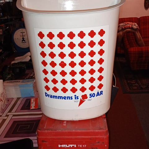 Søppeldunk fra Drammens is selges for 850kr inkl. Porto. Jeg sender med posten med sporing mot forskudd på vipps