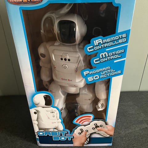 Robot fra lekebutikken, lite brukt. Kan danse, kommandorer. M.m. kul leke. Brio ringo.