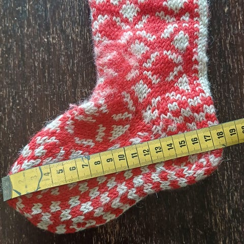 Selger 2 par læsta, hjemme strikket ullsokker. Det er mål på bildene gul til påske rød og hvit til jul kanskje. Brukt en vinter av et barn