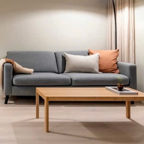 Del 1. En 3 seter modul med armlene på høyre side og to sitteputer, ca.197 cm bred