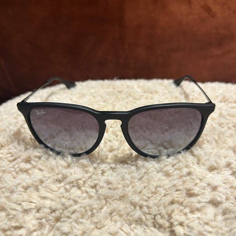 Ray-Ban Erika Dame solbriller med en glassbredde på 54 mm, svart ramme og polariserte linser. Solbrillene har en bredde på 145 mm og er laget for damebruk. Modellen har et klassisk design med rund form og leveres med et beskyttende etui.