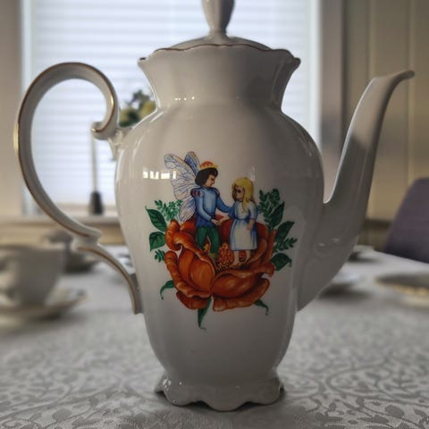Sukkerskål og fløtemugge fra firkløveren i serien H C Andersen. Serien startet i 1975, ett av de første seriene man kunne abonnere på.