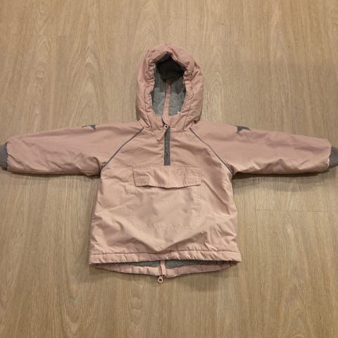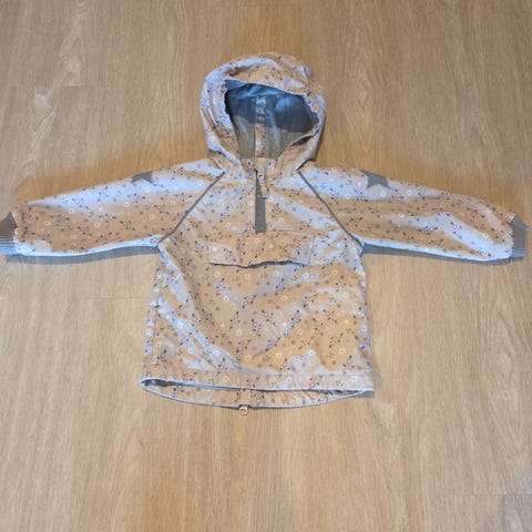 Fin jakke fra Reflex med lilla blomster. Praktisk åpning med glidelås bak for små barn.