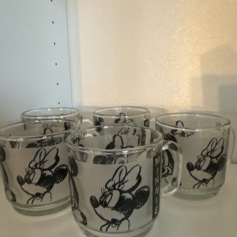Dyp glass skål med Minni dekor selges til fastpris kr 50,- + ev porto.