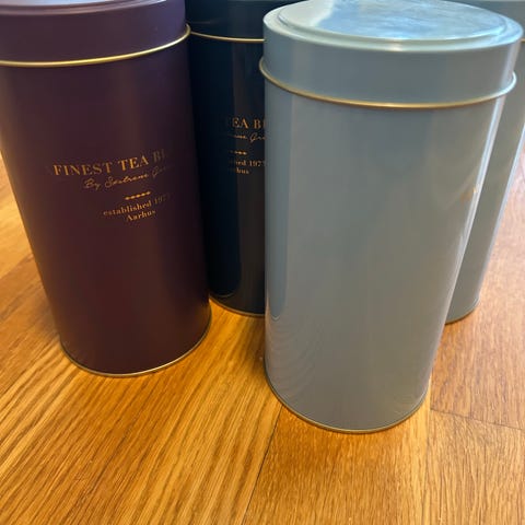 Pene og dekorative oppbevaringsboks / teboks fra harney and sons i oransje og grønn farger, Peppermint, citron green, hot cinnamon spice, salted caramel og peach and ginger. De gjør seg fint fremme på hyllen som dekor. Alle Boksen er uten merknader eller skader utvendig, men de med kanel (cinnamon) har litt slitasje innvendig, se bilder. Dette syntes ikke når lokket er lukket.