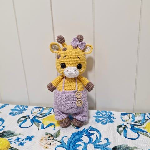 Selger en stor, håndlaget sjiraff heklet med kjærlighet og nøye håndverk, over 40 cm. Denne sjiraffen er inspirert av Norges flaggfarger – rød, hvit og blå – og passer perfekt som gave, pynt eller samlerobjekt.