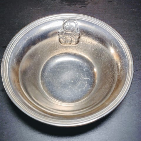 Salatbestikk i tinn fra Haugrud. Lengde 24 cm. Selges for kr. 200,-