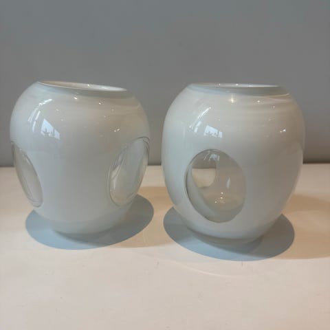 Nydelige med sølvkant øverst og bladmønster risset inn i glasset.