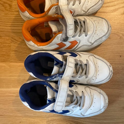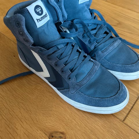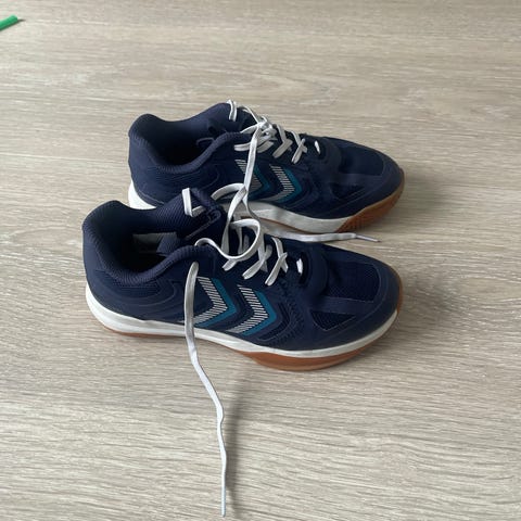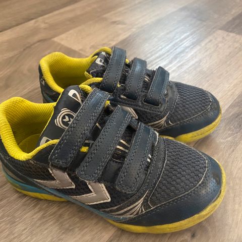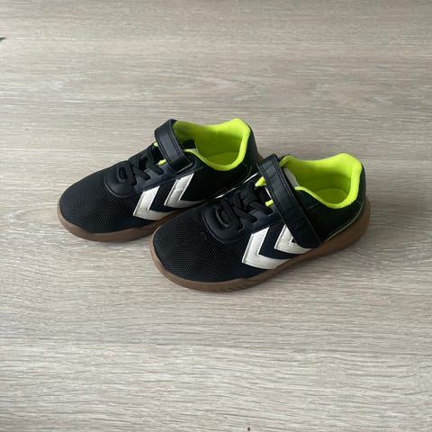 Hummel barn sko i størrelse 32, designet for gutter. Skoene er svarte med blå detaljer og har en kombinasjon av tekstil og syntetisk materiale. De har borrelås og lisser for enkel justering og god passform. Sålen har mønster for bedre grep.