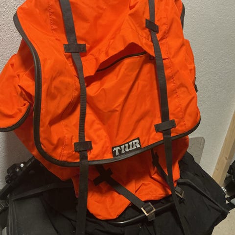 Romslig ryggsekk fra Arild. Norsk produsert. Plass for liggeunderlag (eller annet) på meisen under rommet. To sidelommer og lomme i lokket. Dimensjoner: Total lengde:62, B:33, D40 cm. Kr 100. Mer info t. 90012328