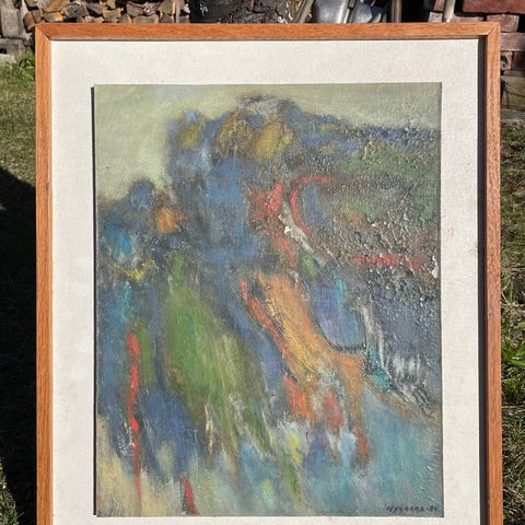 Signert nede til høyre: "O. Oddhaug-98". Yttermål ramme: 25 x 34 cm. Kan sendes.
