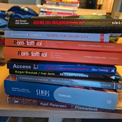 En haug med bøker selges. Noen er helt ny. Noen er gamle. Alle er brukbar.
