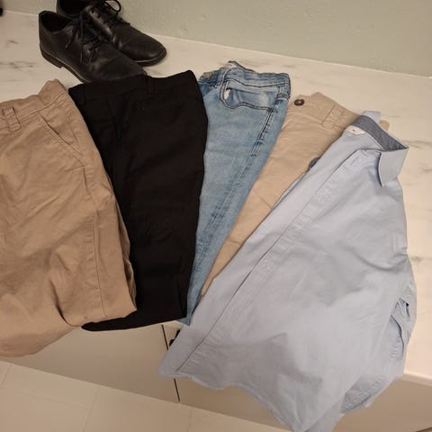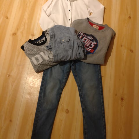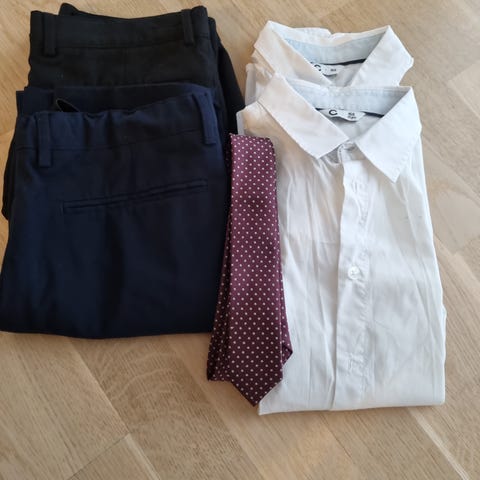 1 dressbukse str 152 fra KappAhl brukt en gang. 3 skjorter i str.146 (Cubus, HM og Lindex). Kan fint brukes om hverandre!