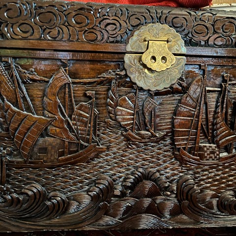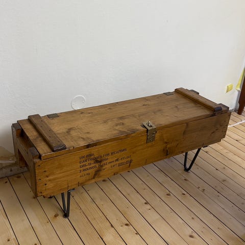 Gammel trekasse, håndlagd. Opprinnelig trehvit. Malt grønn utvendig.