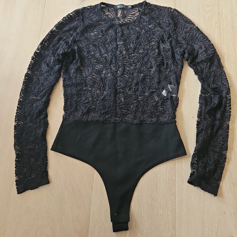 Rosa body, med lange armer i str XS/32 selges for 100kr.