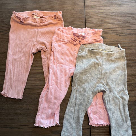 Thick cotton pants from Newbie, very soft and comfortable. Both hardly worn as baby grew too fast. Comes from pet free smoke free home.