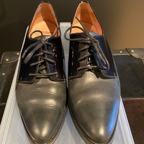 Diverse pensko i svart skinn for dame, størrelse 36. Noen sko har snøring og en lav hæl, egnet for formelle anledninger eller kontorbruk. Ett par har litt hæl, og har samme bruksområde. Materialet er skinn, som gir holdbarhet og klassisk utseende. Kr. 200 pr. stk. Pris kan avtales ved kjøp av flere par. Løp å kjøp!