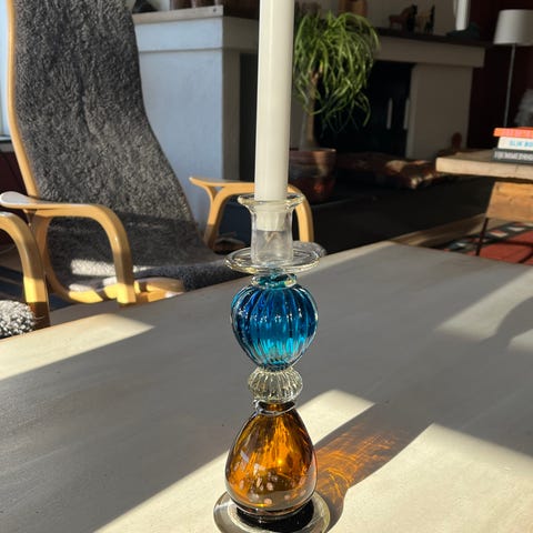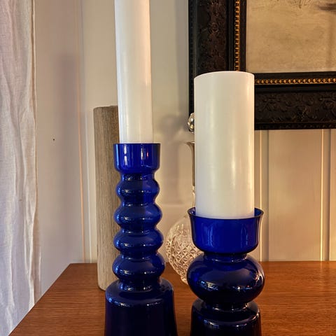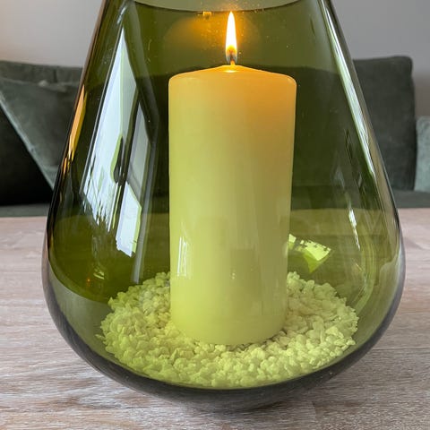 Svært pen design lysestake i grønt glass med boble fasong. Passer til kubbelys.