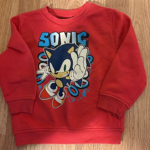 Sonic The Hedgehog hettegenser i blå farge, størrelse 98, beregnet for gutter. Genseren har hette og motiv av Sonic karakteren på fronten. Laget for barn i alderen 2-3 år.