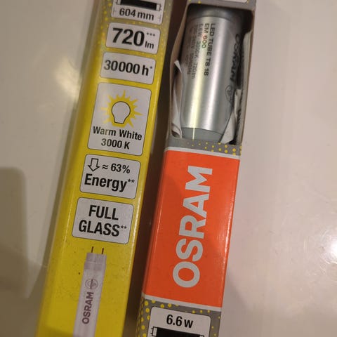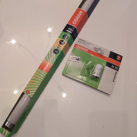 2 lysstoffrør. Nye. Var for lange for vår lampe.