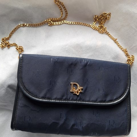 Vintage Dior veske i canvas fra 80-tallet. Mål B23xH14 cm. Farge svart/beige. Med gullenke. Kan sende med Postnord. Se også mine andre annonser ved å klikke på navnet mitt. Mye fint både gammelt og nytt til bra priser.