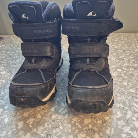 Viking barnesko i størrelse 32, unisex modell. Skoene er svarte og har borrelås for enkel justering. Egnet for barn og laget med materialer som gir komfort og støtte.