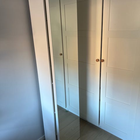 Meget pent eikeskap. Et år. Aldri hengt opp, og kun stått på gjestebad. Dybde 34cm, høyde 117, bredde 40.