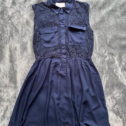 Pen marineblå kjole fra Vero Moda i størrelse M, helforet, marineblå farge med mønster.