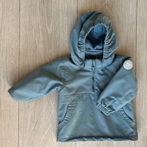 Nydelig skalljakke fra wheat som datteren min brukte fra hun var str 74-86. Den tåler masse regn og er stor i str. Veldig fint brukt og bare brukt av et barn:)