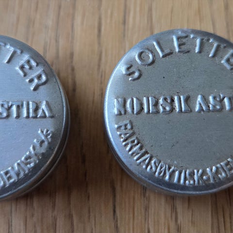 Liten treboks med diameter ca 3,5cm. Gammel typer søtning. Pent brukt.