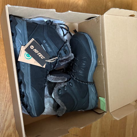 Vinterstøvel fra Hi-tec str 44 selges. Svart. Foret. Forsterket i tåparti. Pent og lite brukt.