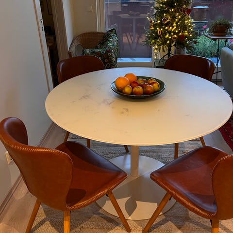 Pent brukte og flotte italienske skinn spisestoler til salgs