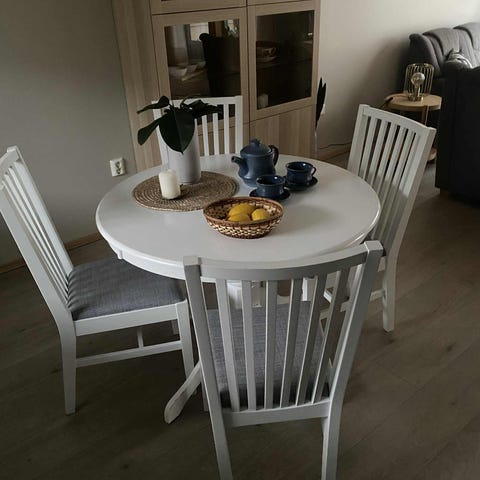 Disse 6 stolene er av merket Effezeta, italiensk design. Meget pent brukt. Gode å sitte på. Tåler lange middager godt!