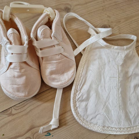 Klassisk og tidløs design med satengbånd – passer både til gutt og jente.