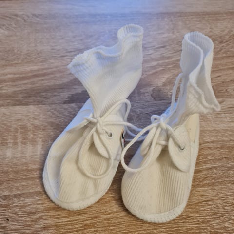 Heklede baby sko / dåpssko – Jocko (0–6 mnd)