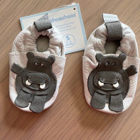 Nydelige håndheklede baby sko fra Jocko, perfekt til dåp, navnefest eller som gave til nyfødt.
