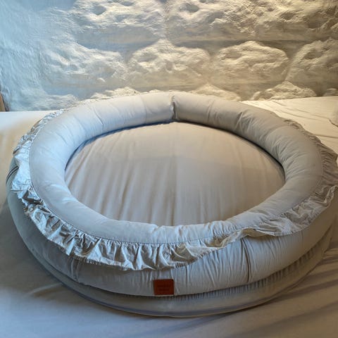 En fin varmeovn til stellebordet. Varmeovnen er veggmontert, har en ledning til å tenne på, og varmer opp stelleområdet slik at babyen ikke fryser under bleieskift. Den slår seg av hvis den står på etter noen minutter. Flott å forberede seg på vinteren, spesielt i kaldere hjem og soverom.