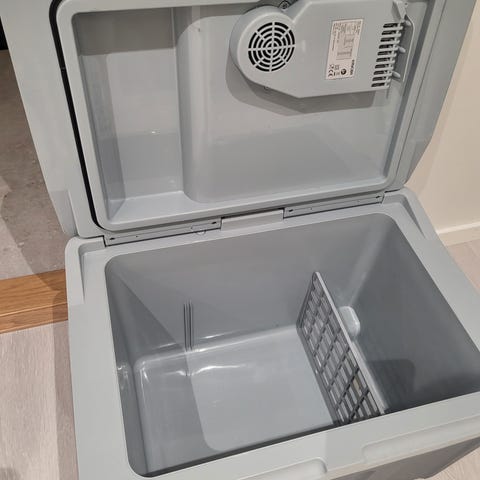 Med denne bærbare 40-liters termoelektriske kjøleboksen, som kan kjøle ned eller holde maten varm, vil du være godt utstyrt med kald drikke om sommeren og varme retter om vinteren.