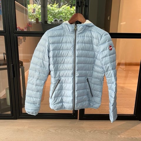 Selger en pen lyseblå Colmarjakke i str 44, vil si den tilsvarer en small.