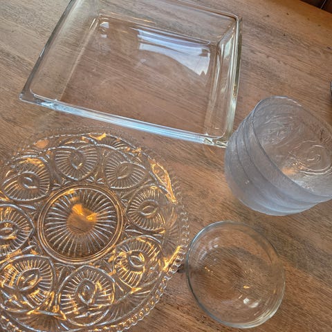 Glass servise sett med fat og skåler