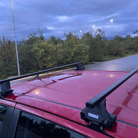 Passer på Toyota Hilux. Takrails fra Thule er lite og pent brukt, men har ro hull i seg etter montering av lys.