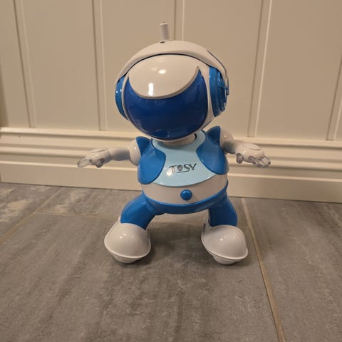 Dette er en TOSY DiscoRobo, en interaktiv dansende robotleke.