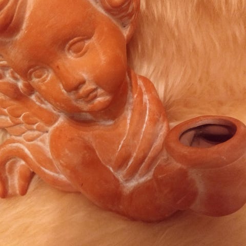 Den ene vinge har vært limpt på og det er et merke på hånden.(se bilde)