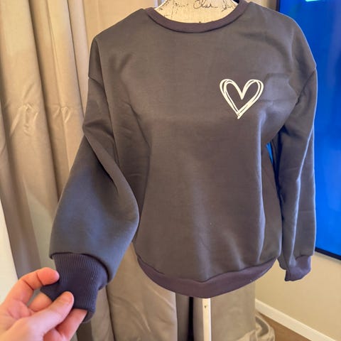 Beige genser med hjerte – enkel, myk og feminin
