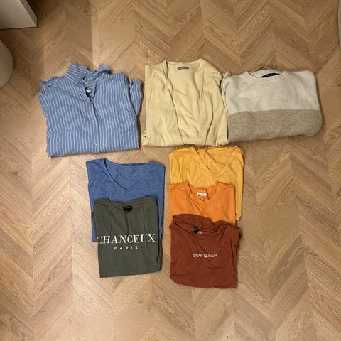 🧶 Pakke med 7 gensere og cardigans – klassiske og myke favoritter (str. L–XL)