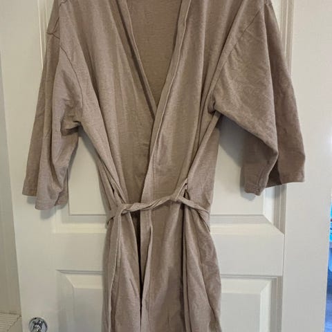Cardiganen har et belte i midjen med et mykt materiale og egnet for komfortabel bruk under graviditet.