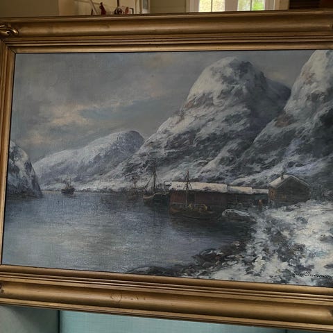 Flott, stort maleri av Vassvik. Mål utvendig ramme: B = 77 H = 57