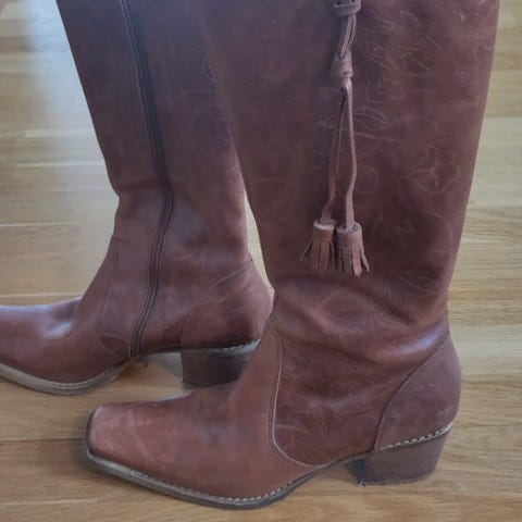 Støvletter, lange. Str 39. Ca 46 cm høye.