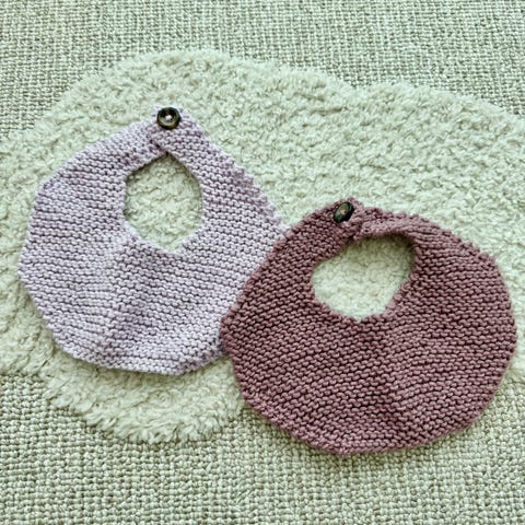 7 stk hjemmestrikket smekker, en blå er ikke avbildet.